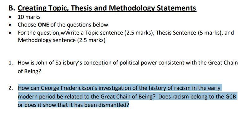 Solved For The Question Write A Topic Sentence Thesis Chegg Com